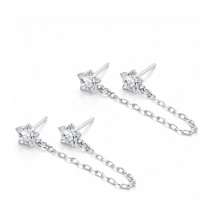 Brinco Prata Duplo Estrela 06mm Corrente Cartie