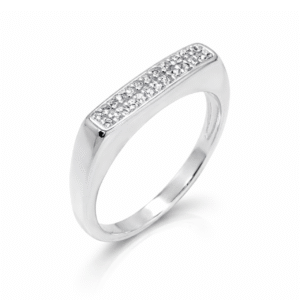Anel Prata Base Reta Cravejada