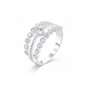 Anel Prata 03 Fios – 02 com Zircônias nas Laterais e Solitário Zircônia Coração