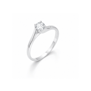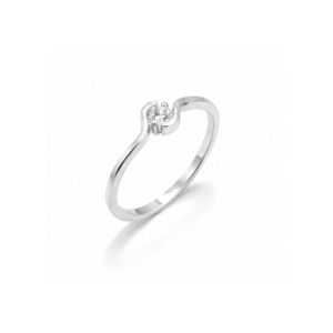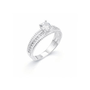 Anel Prata Solitário Zirconia Coraçao 4 Grifas 4 MM