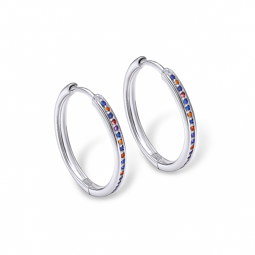 Brinco Prata Argola Cravejada Colorida 22 MM