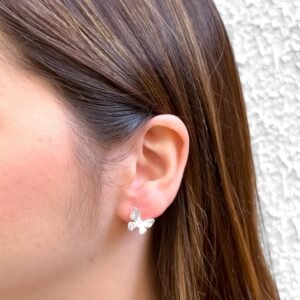 Brinco Prata Borboleta Pérolas