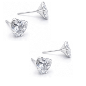 Cartela Brincos Prata Zircônia Coração 8 mm – Contém 06 Pares
