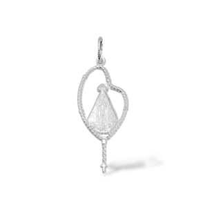 Pingente Prata Coração Abaulado Nossa Senhora Aparecida