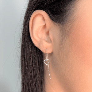 Conjunto Prata Coração Clips Cravejado de 01 Lado