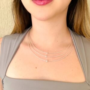 ColarPrata 3 Fios Rígidos Bolas
