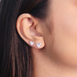 Cartela Brincos Prata Zircônia Coração 6×6 mm – Contém 3 pares
