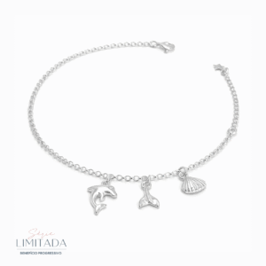 Pulseira Prata Golfinho Cauda de Sereia Concha
