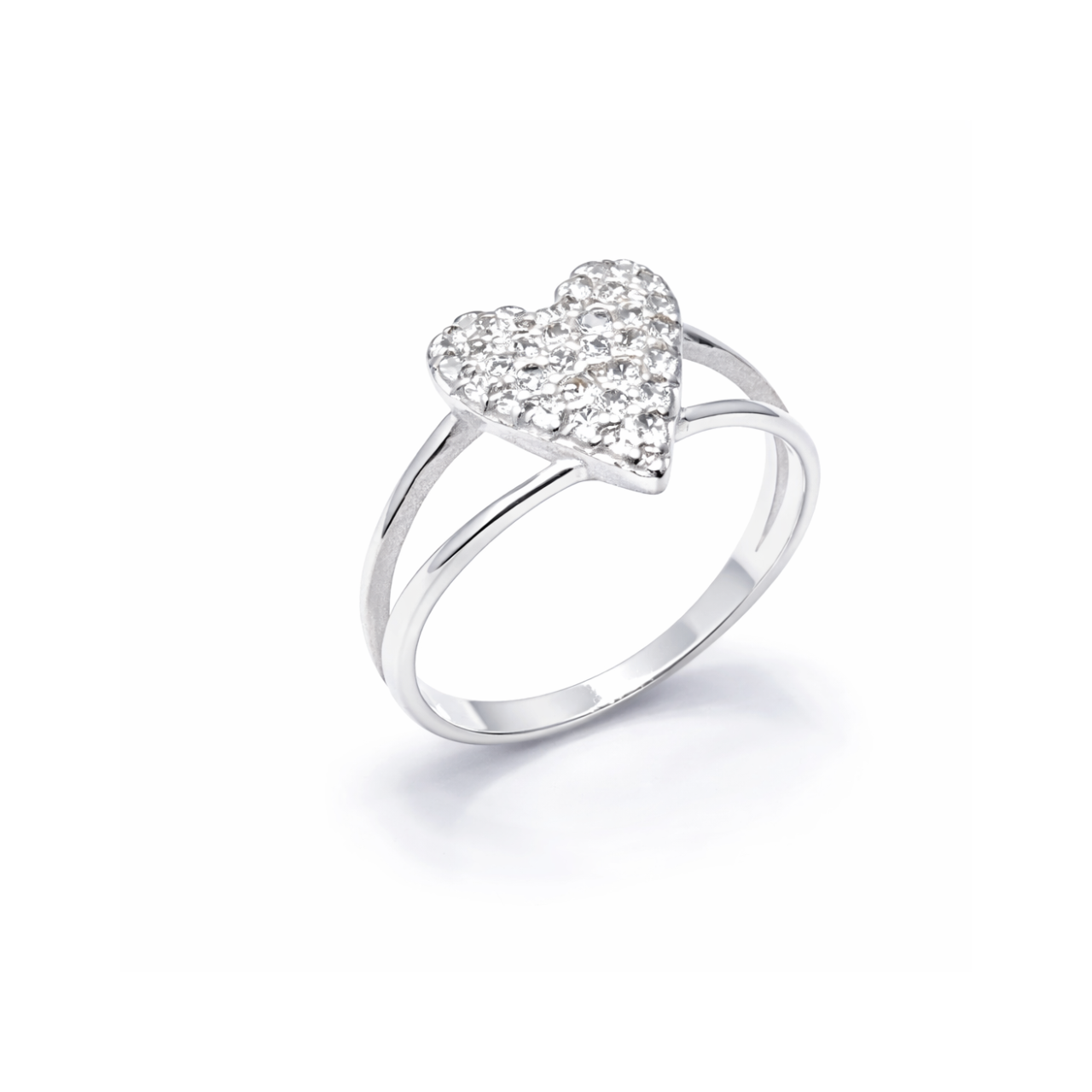 Detalhes Anel em prata com 02 fios com coração cravejado