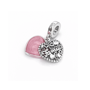 Conjunto Prata Coração Rosa Cravejado Lateral