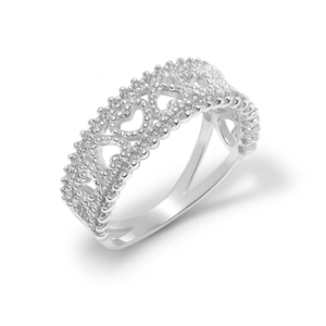 Anel Prata Aro Corações Vazados e Bordas Cravejadas