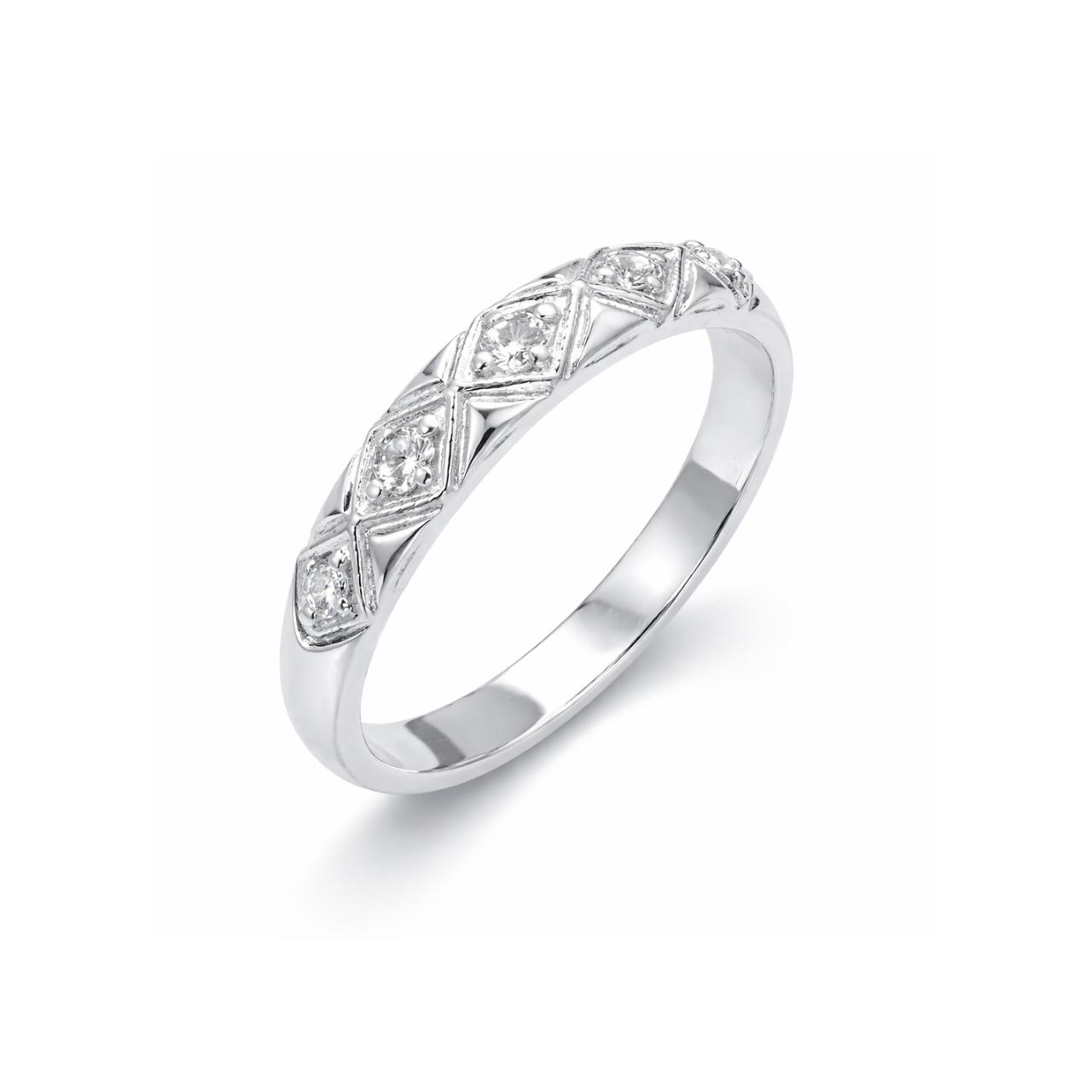 Anel Prata Aparador 5 Zirconia Detalhe Abaulado