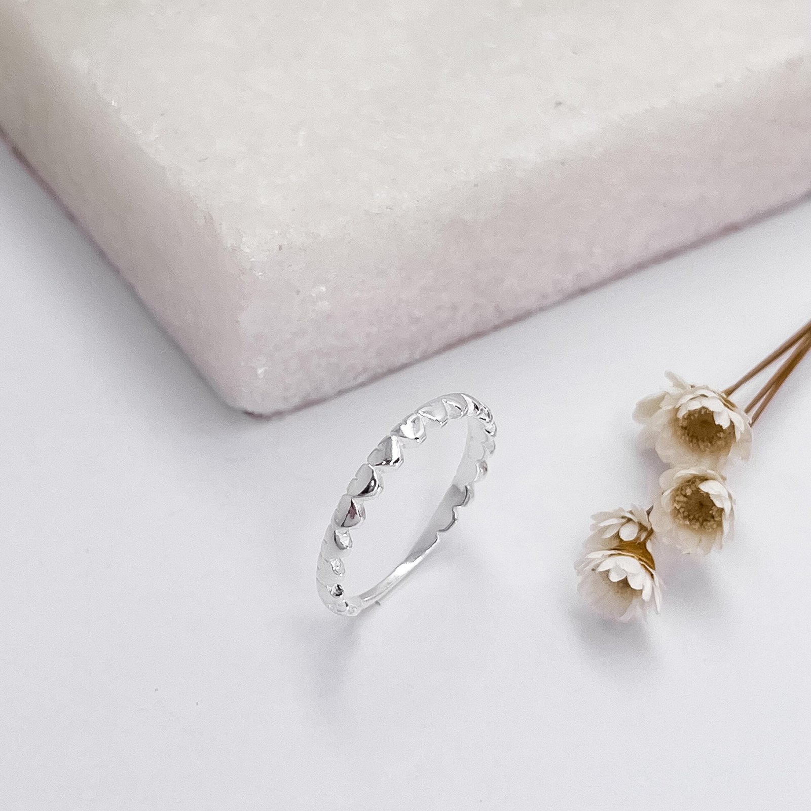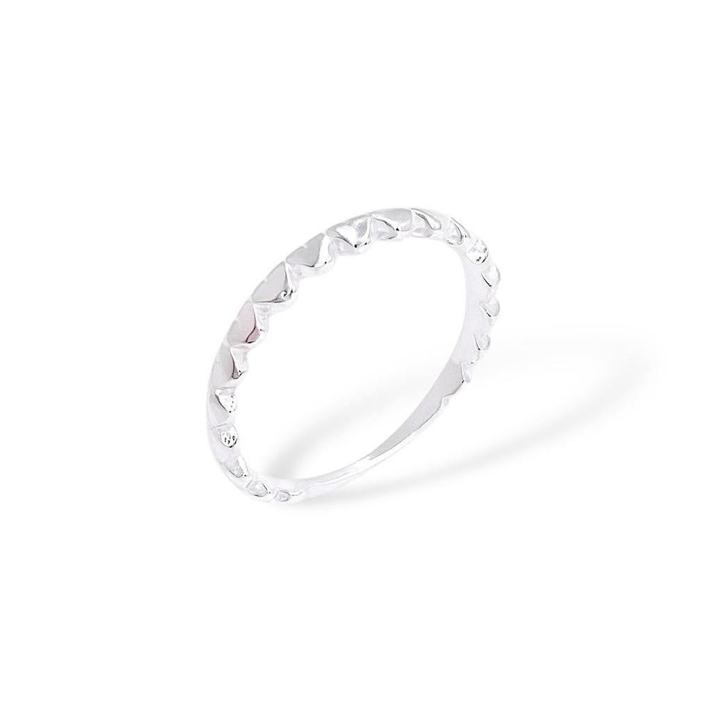 Anel Prata 03 Fios – 02 com Zircônias nas Laterais e Solitário Zircônia Coração