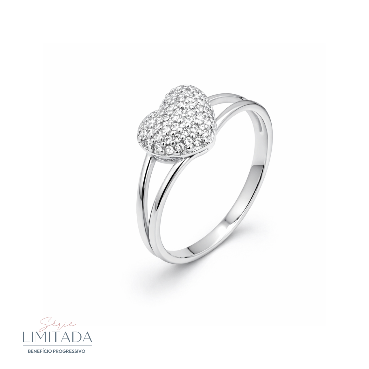 Detalhes Anel prata aro duplo com coração cravejado