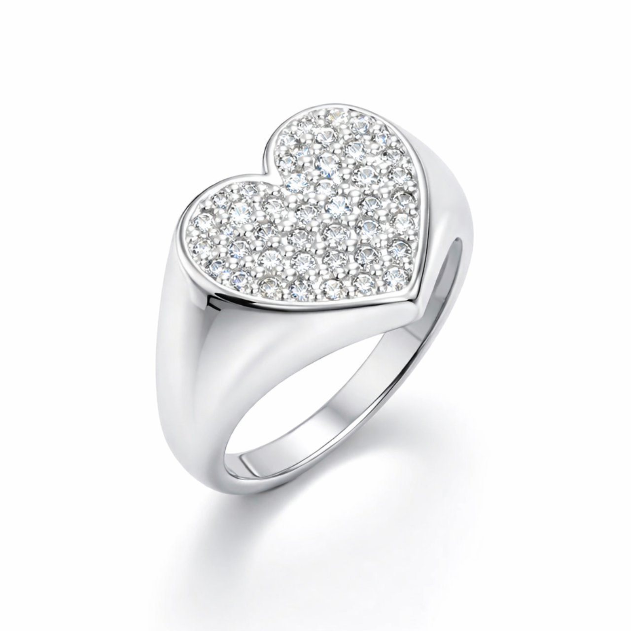 Anel Prata coração todo cravejado para dedo mínimo