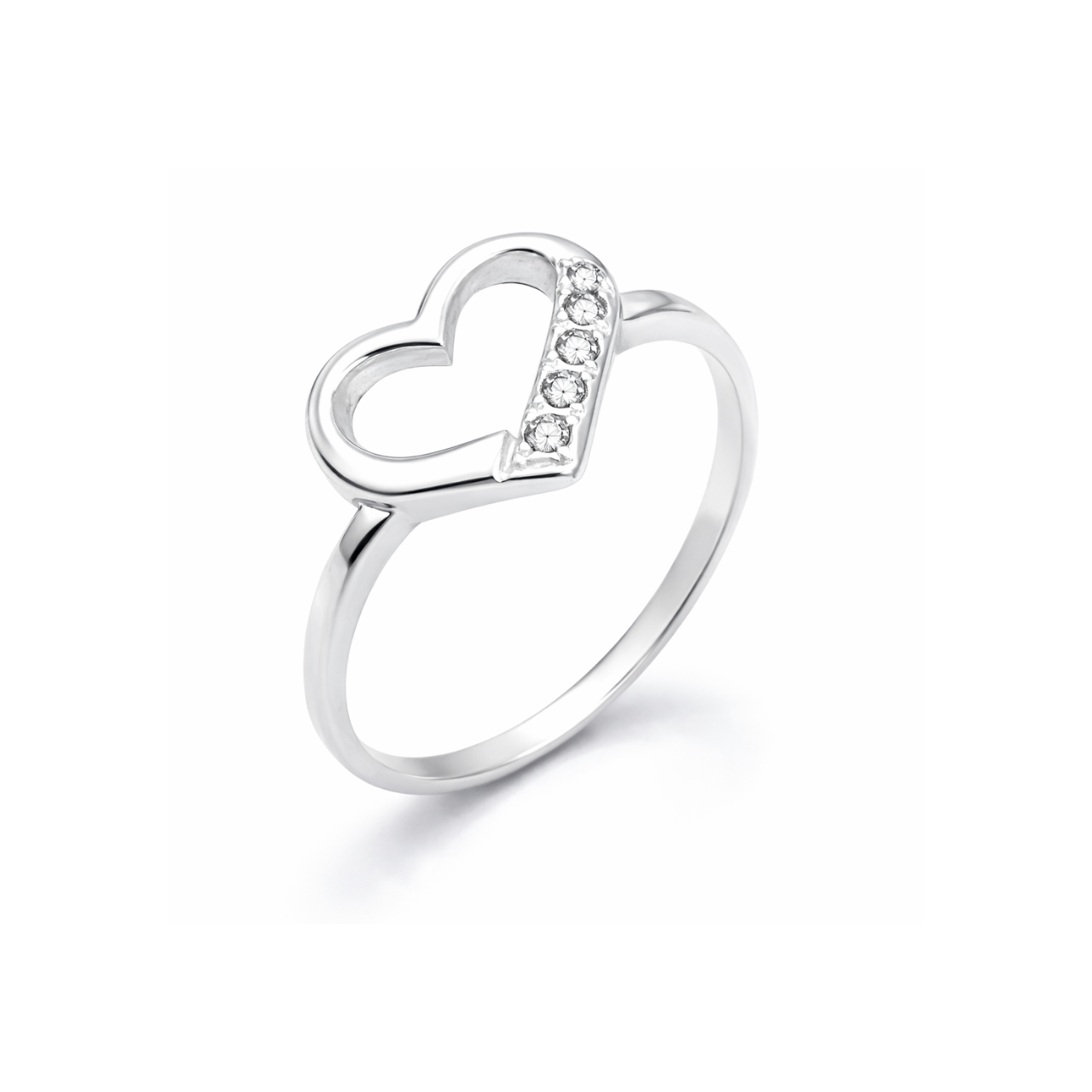 Anel Prata Coração Vazado Cravejado