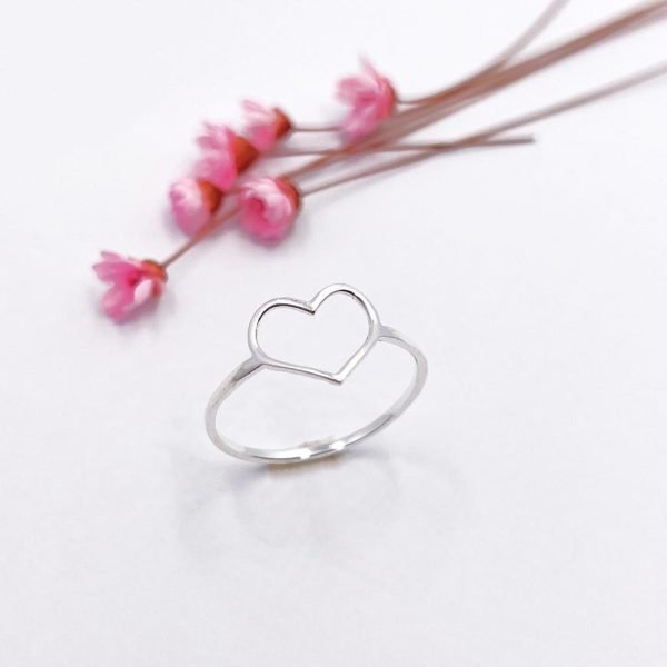 Detalhes Anel em prata no formato de coração vazado todo liso