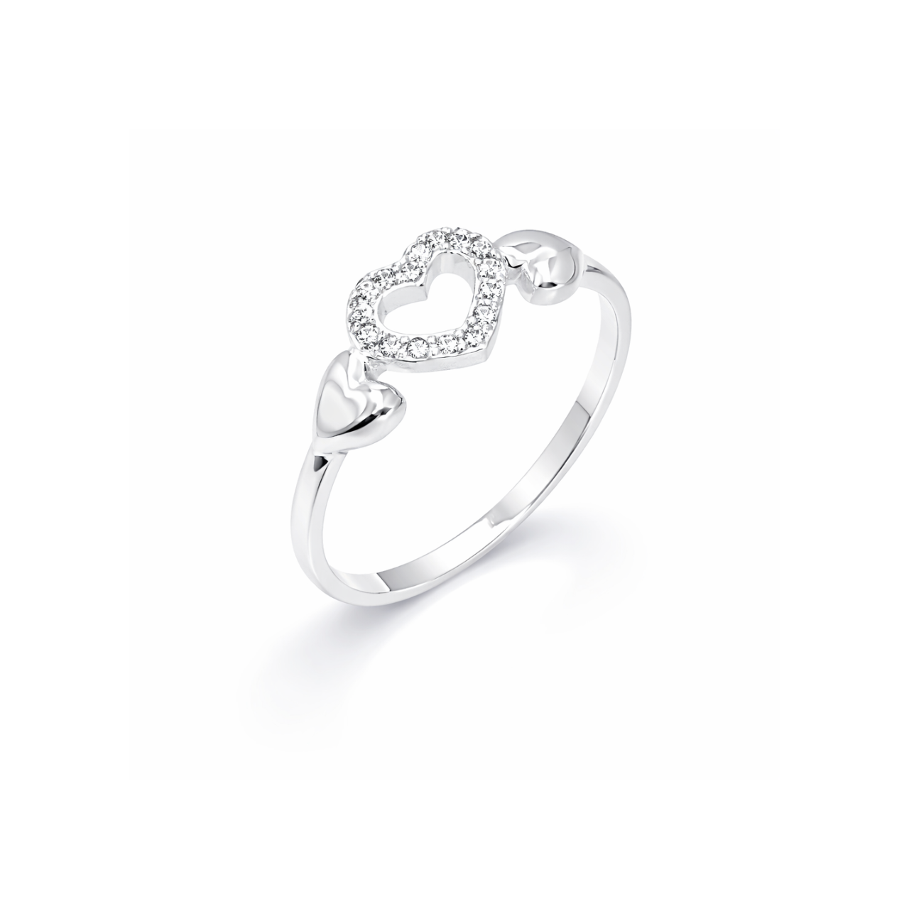 Anel Prata 3 corações vazados; 2 lisos, 1 cravejado