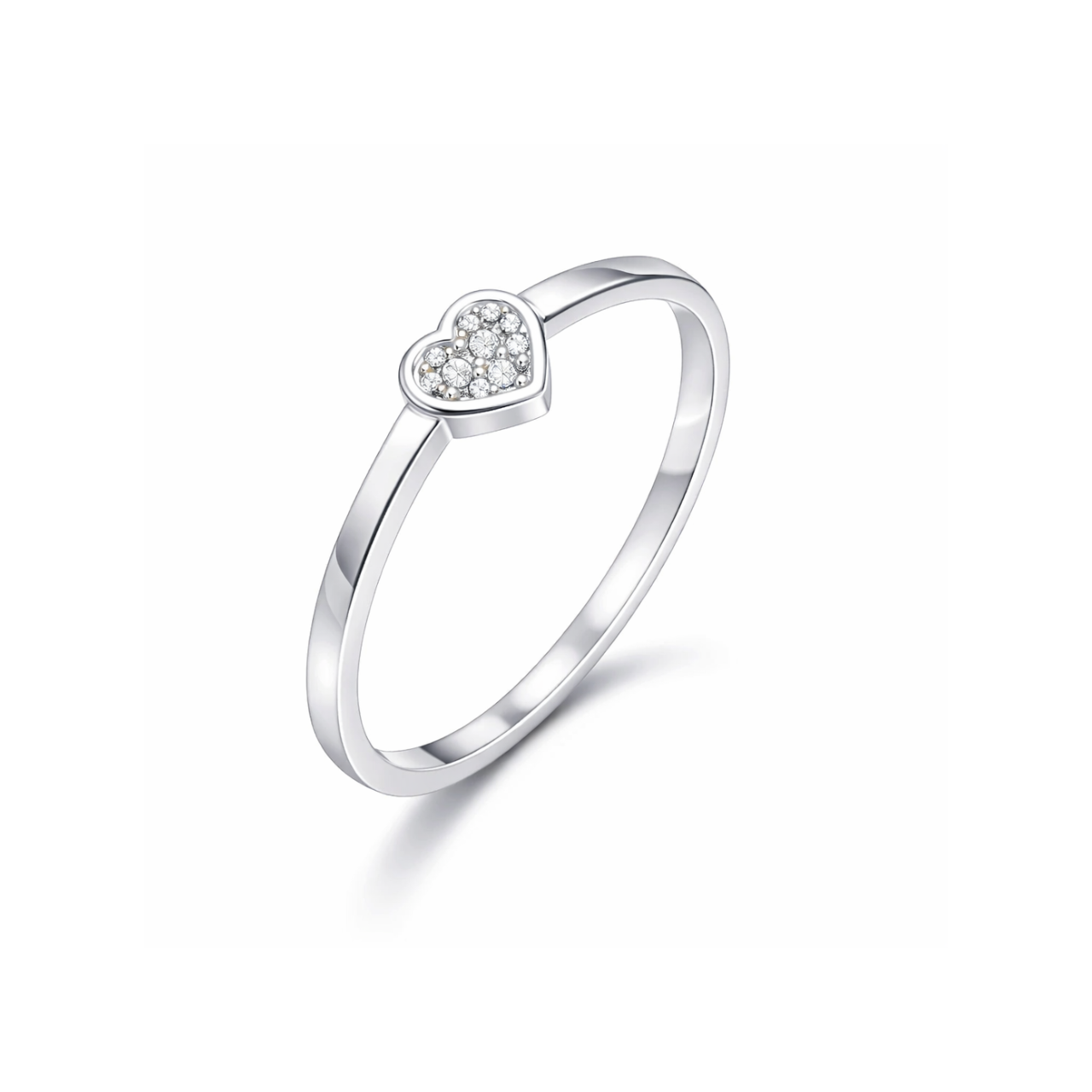 Detalhes Anel em prata delicado com mini coração cravejado central