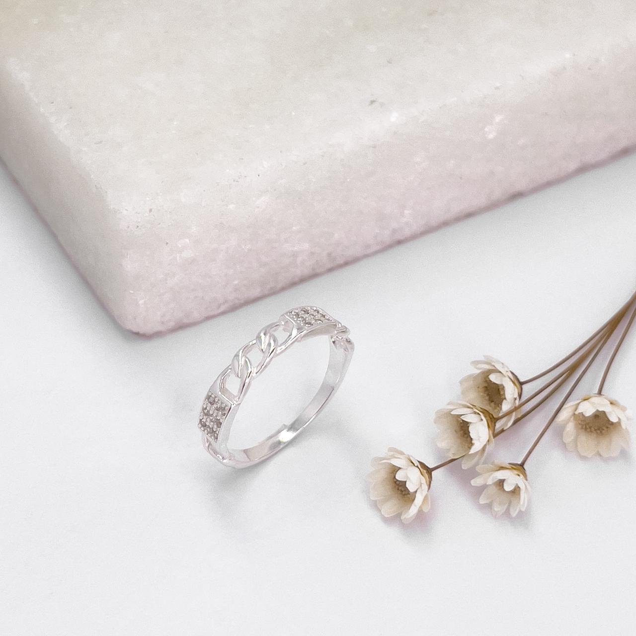 Anel Prata Detalhes de Corrente
