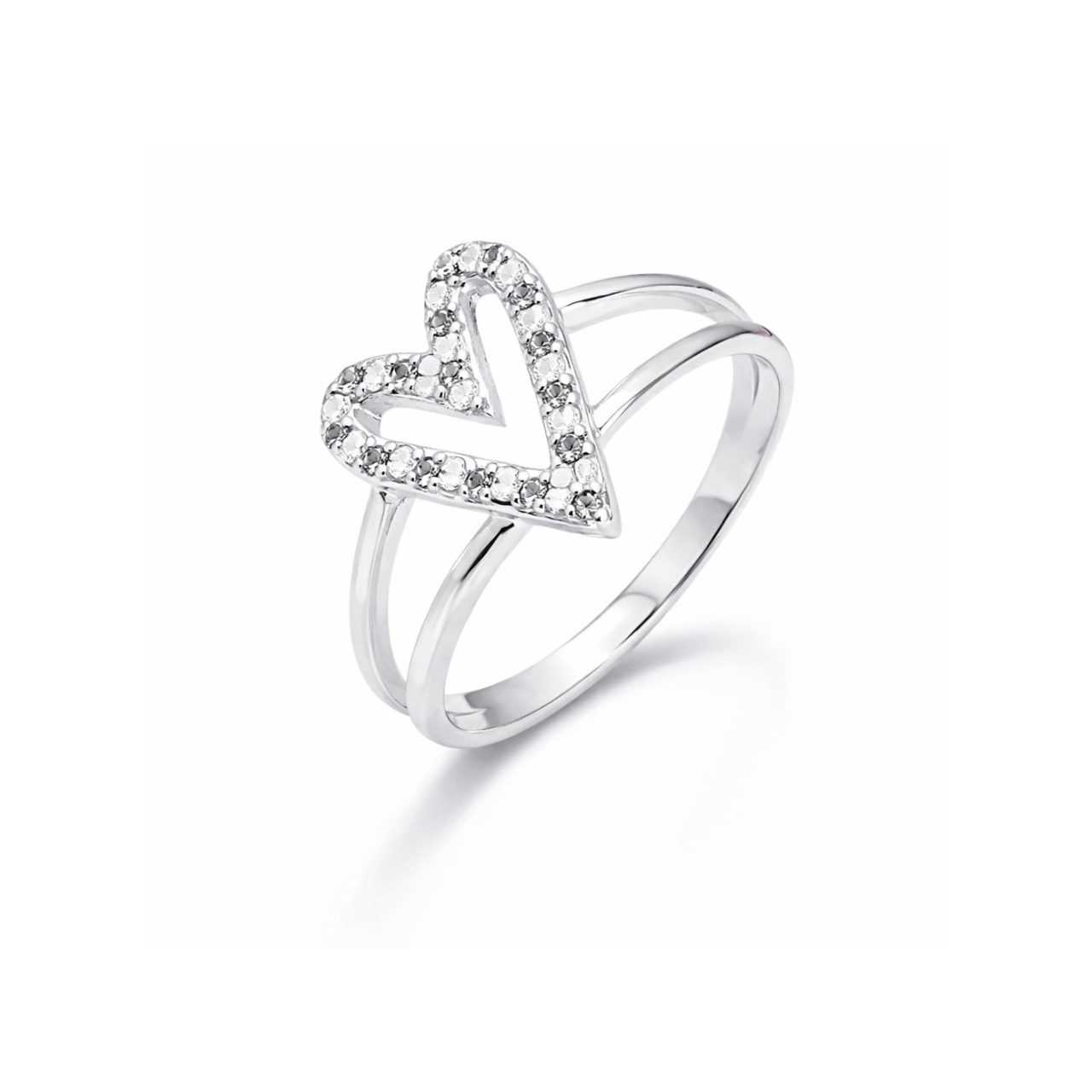 Início ANÉIS Feminino Cravejados Anel Prata Dois Fios Coração Vazado