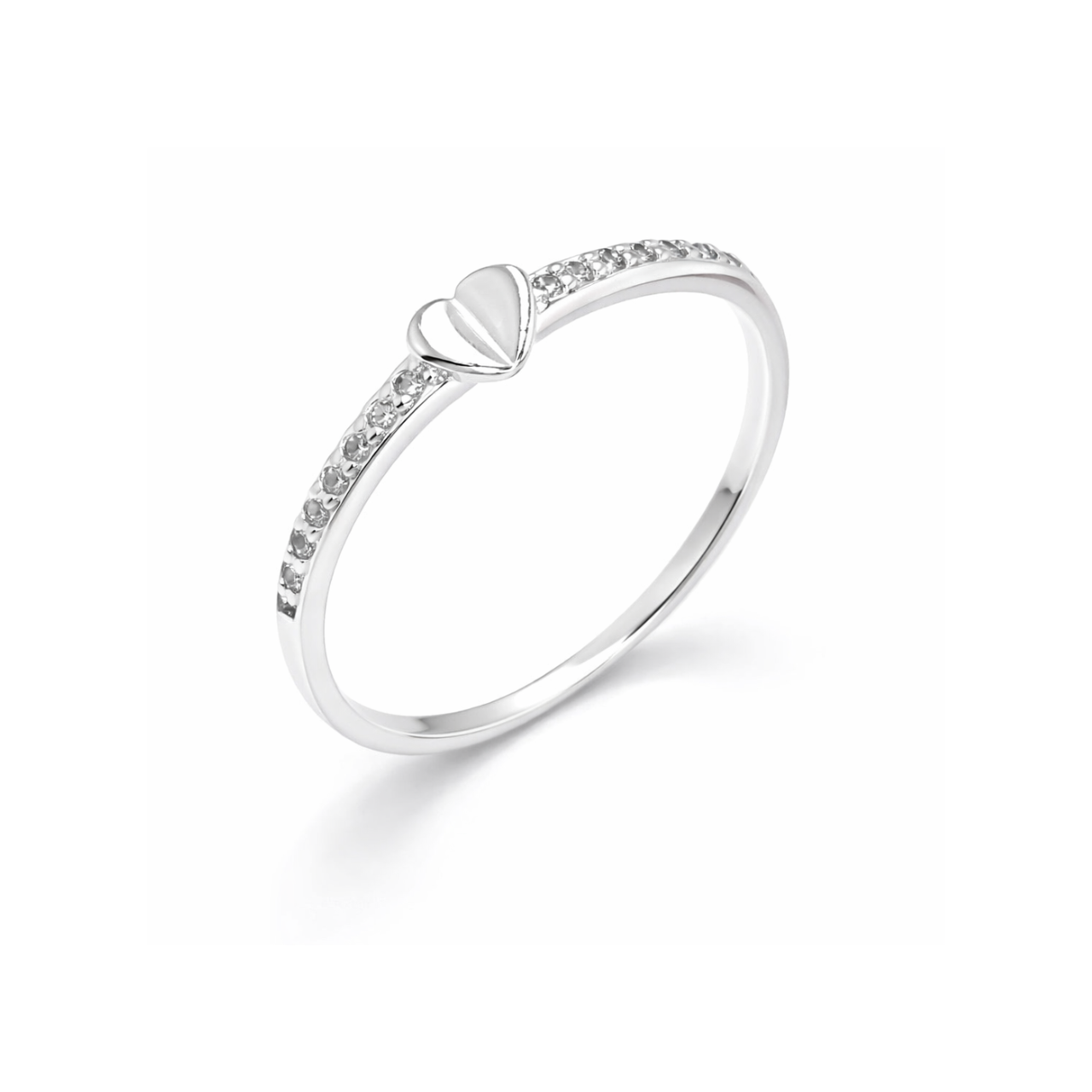 Anel Prata Mini Coração Liso Centro Laterais Cravejadas