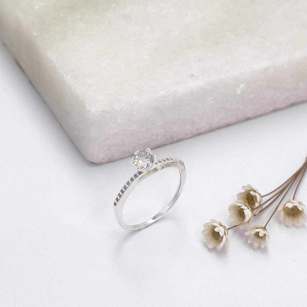 Início ANÉIS Feminino Solitários Anel Prata Solitário 06 mm Cravejado nas Laterais