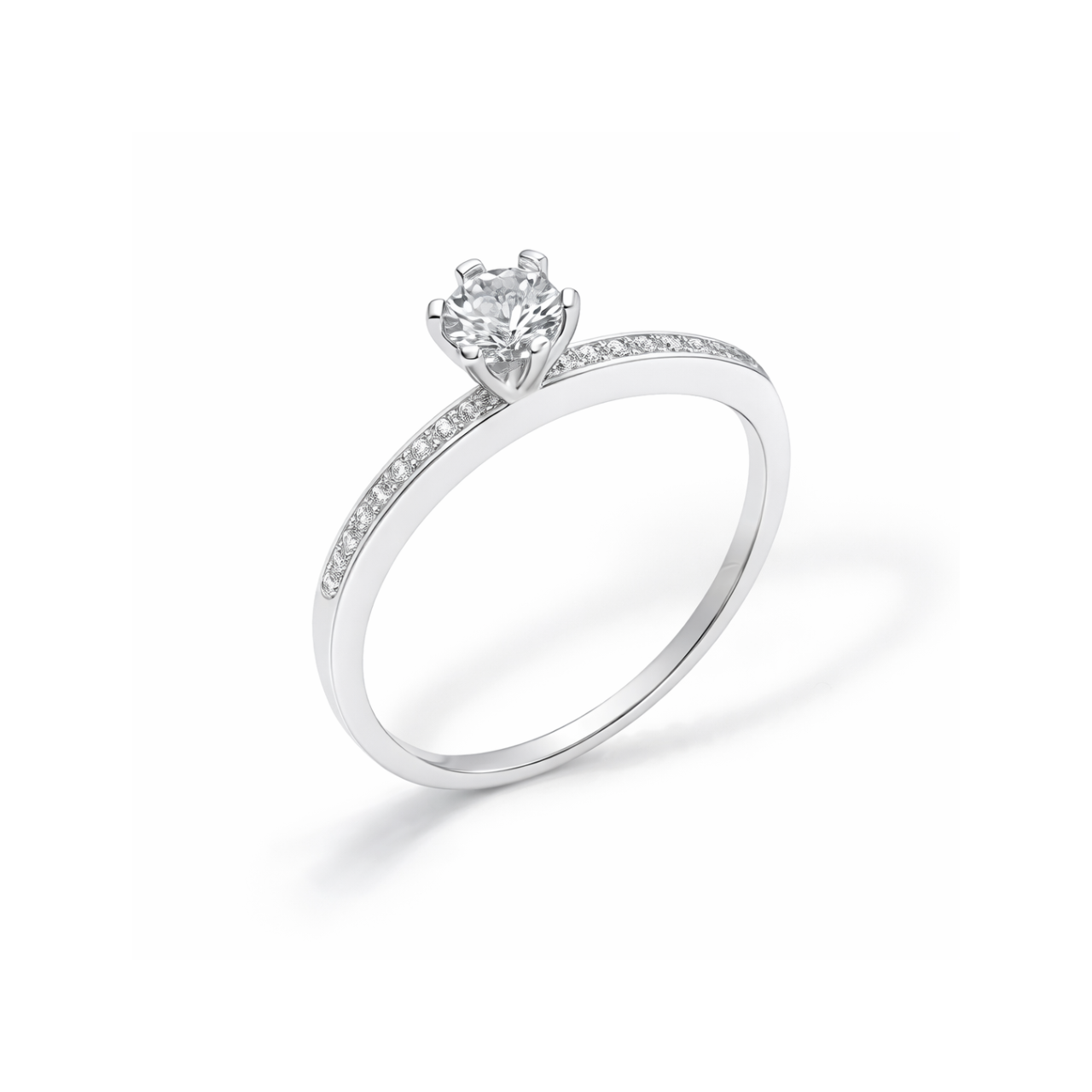 Anel Prata Solitário 06 mm Cravejado nas Laterais