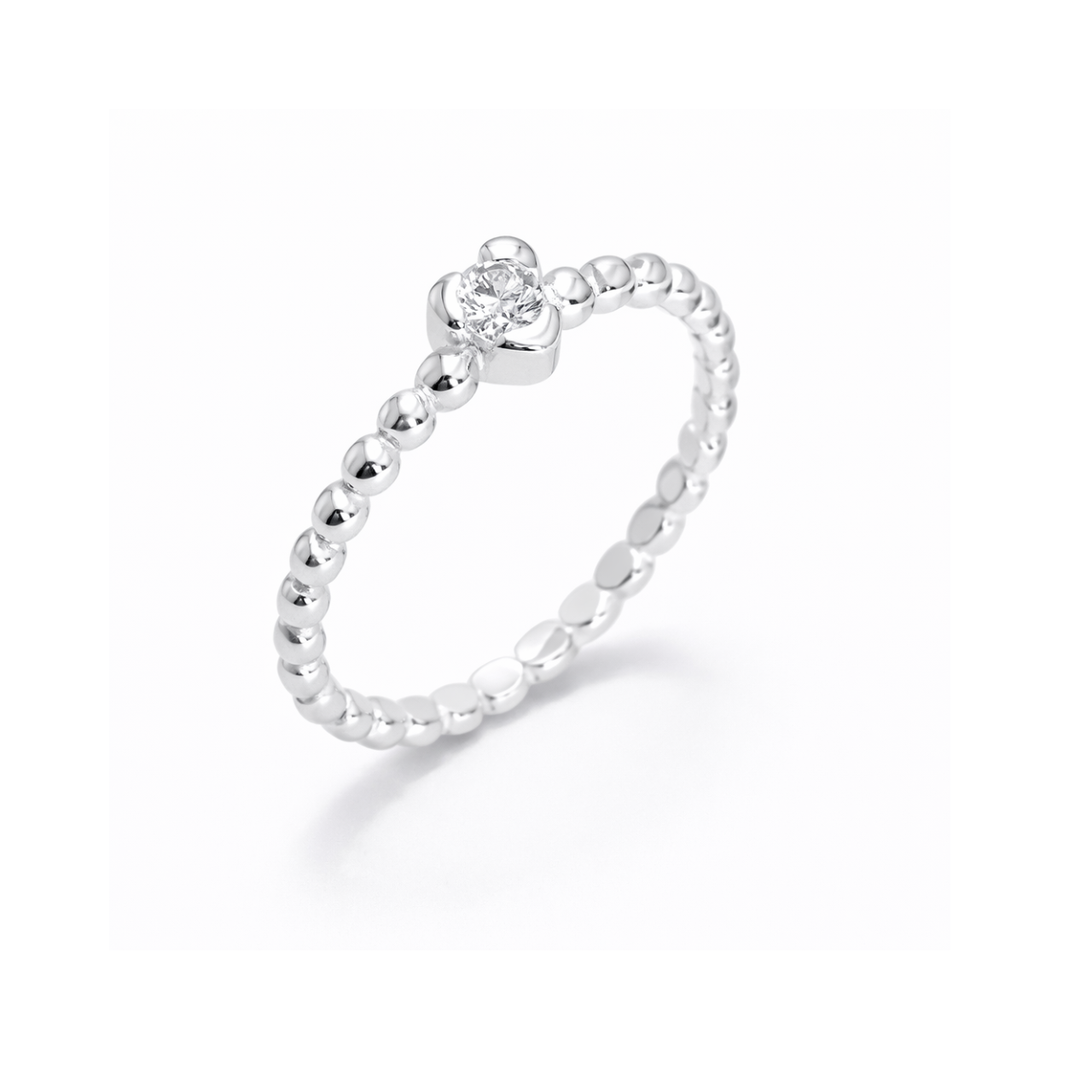 Detalhes Anel em prata solitário com zircônia no formato de coração com aro bolinhas