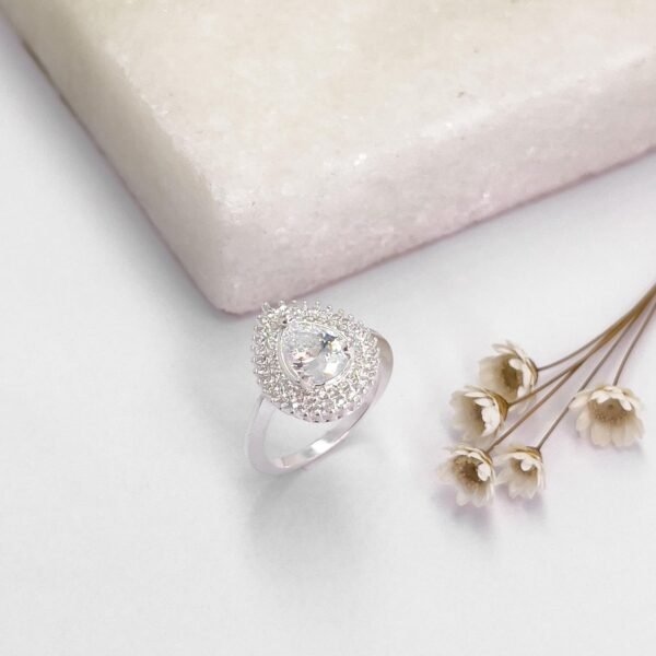 Detalhes Anel em prata zircônia no formato de gota com 06mm cravejado em volta caixa alta