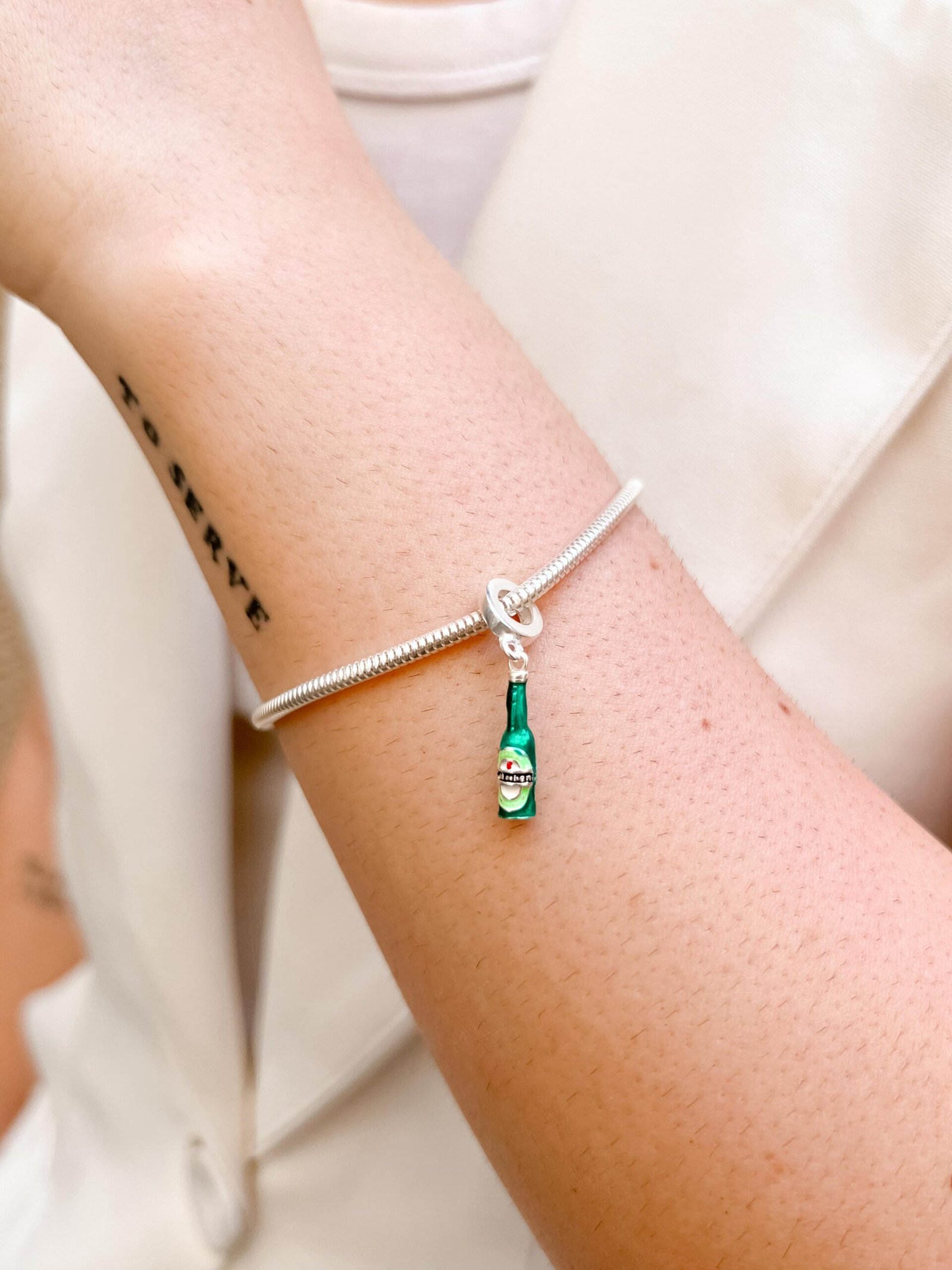 Detalhes Berloque em prata ping cerveja garrafa heineken