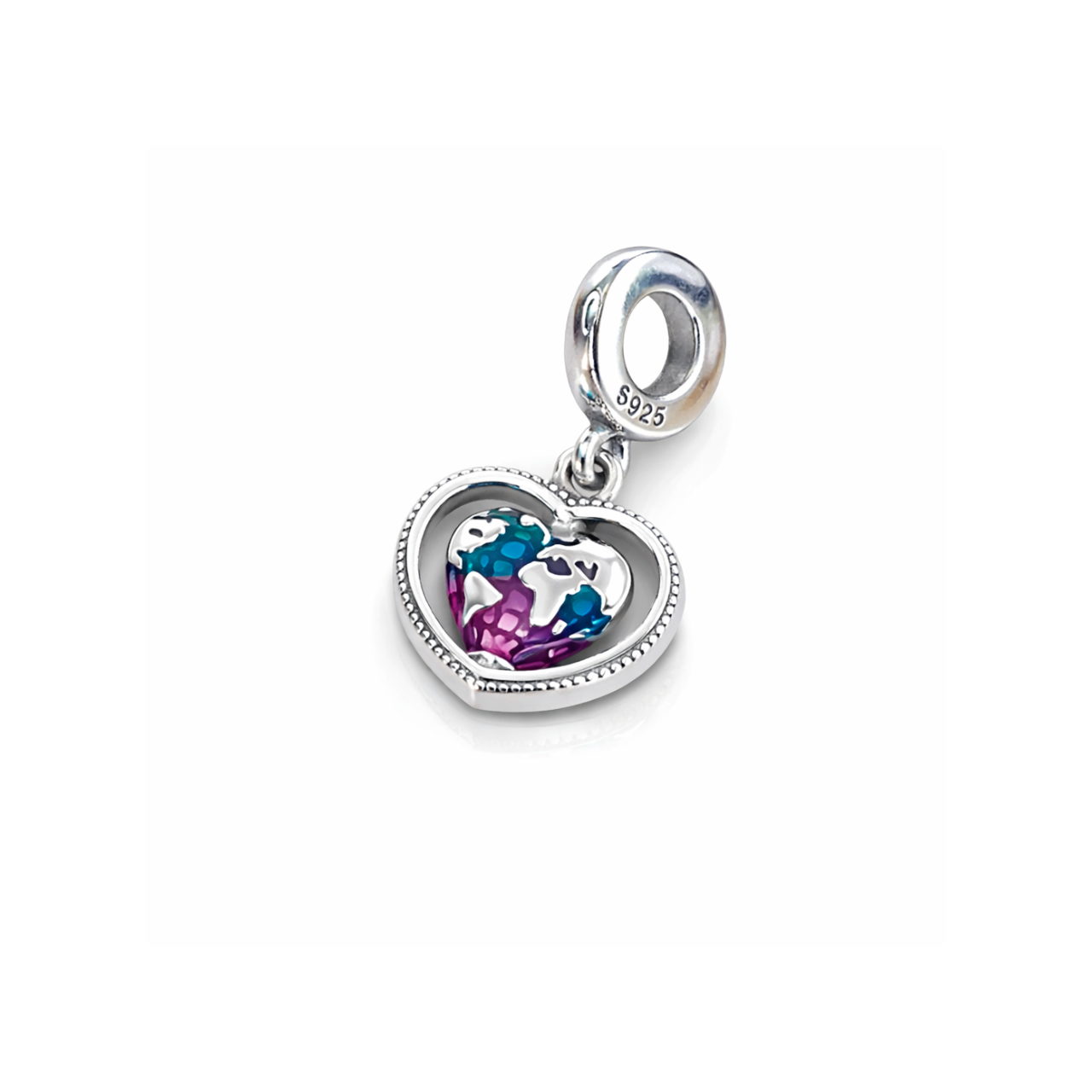 Início EDIÇÃO RARA Berloques Berloque Prata Coraçao Com Mundo Flexível