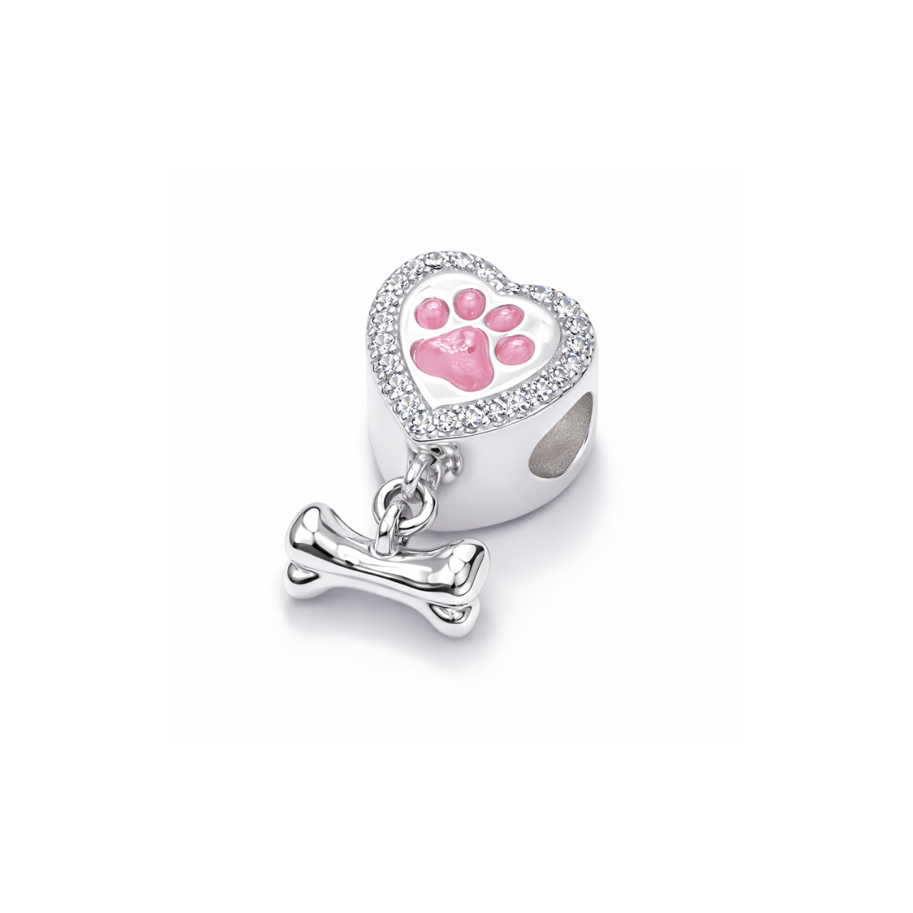 Berloque Prata Coração Pata Cravejado e Ossinho