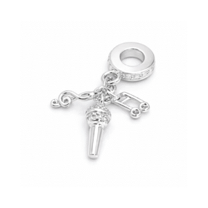 Berloque Prata Fone Microfone Nota Musical Cravejado