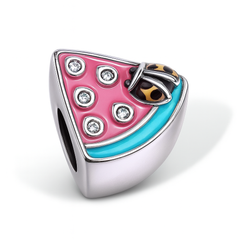 Berloque Prata Separador Melancia Joaninha Zirconia
