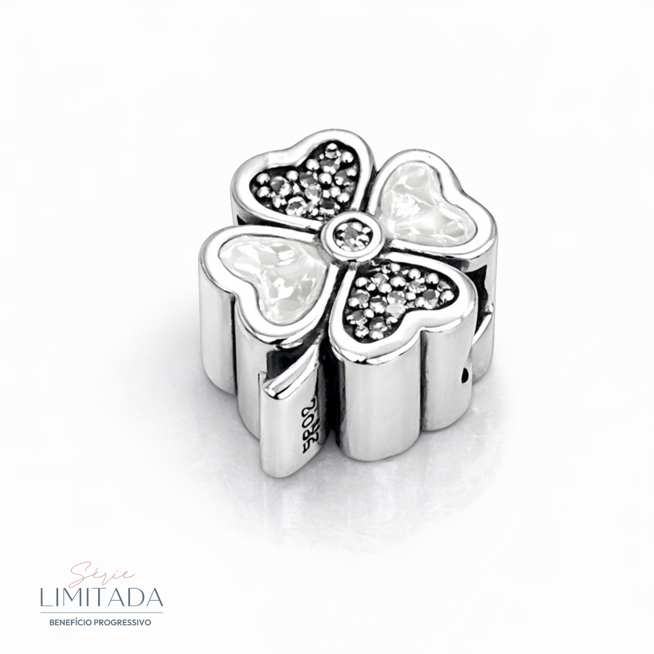 Início EDIÇÃO RARA Berloques Berloque Prata Separador Trevo Madre Perola Cravejado
