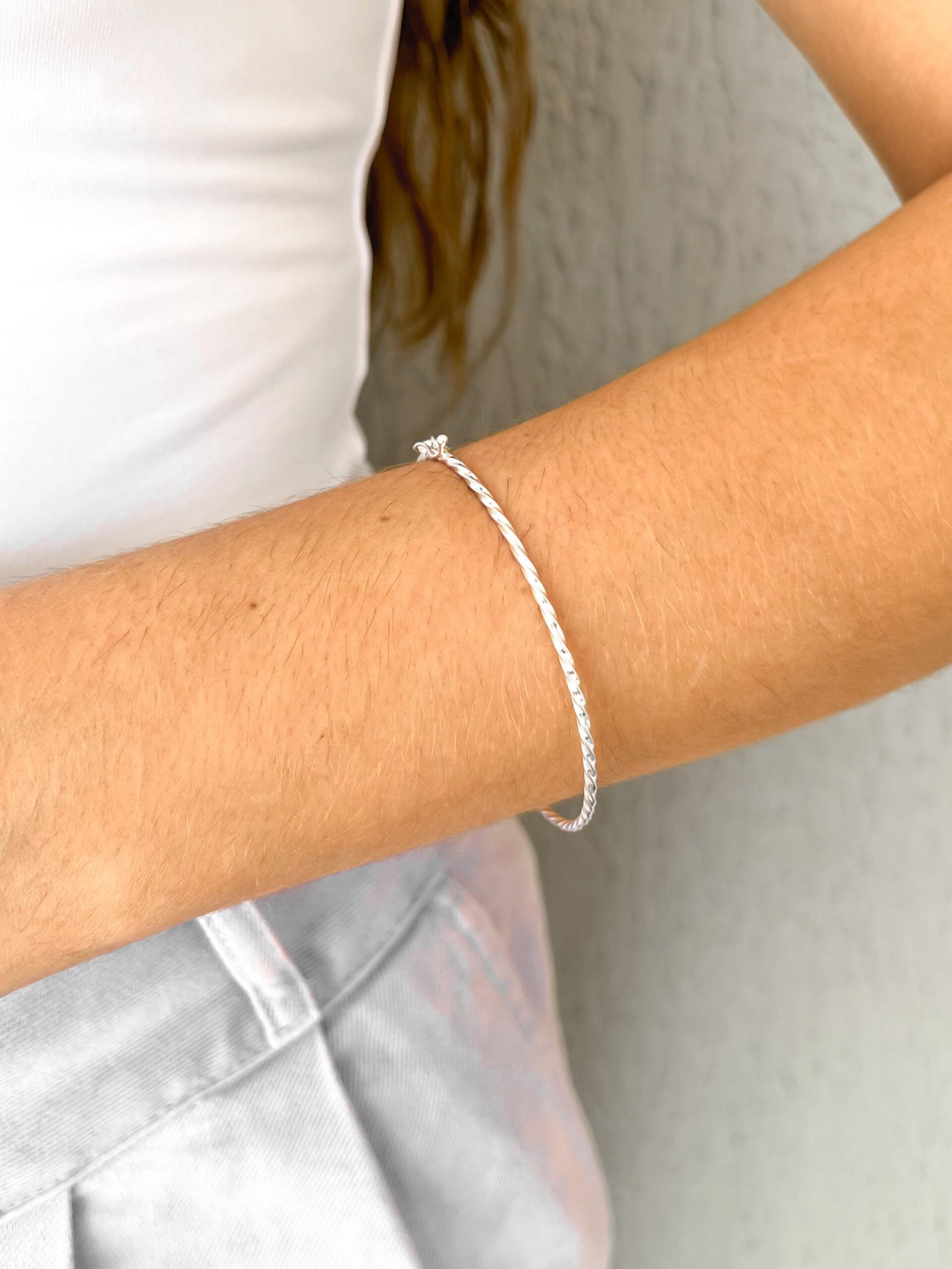 Início PULSEIRAS Feminina Braceletes Bracelete Prata Fio Torcido