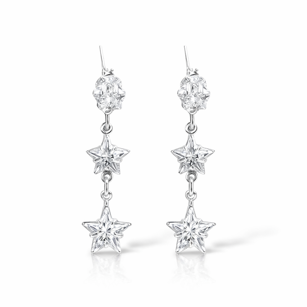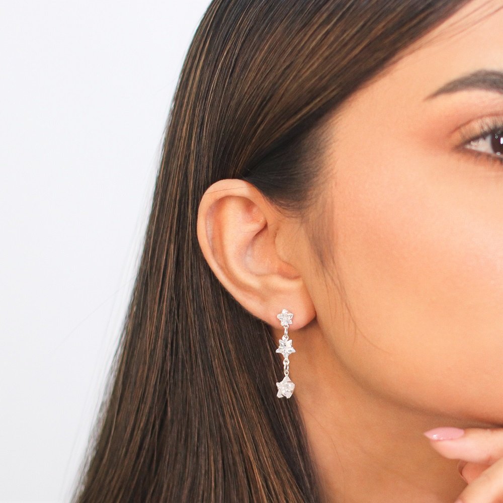 Início FÁBRICA Brincos Prata 03 Estrelas Penduradas 06 mm 07 mm 08 mm