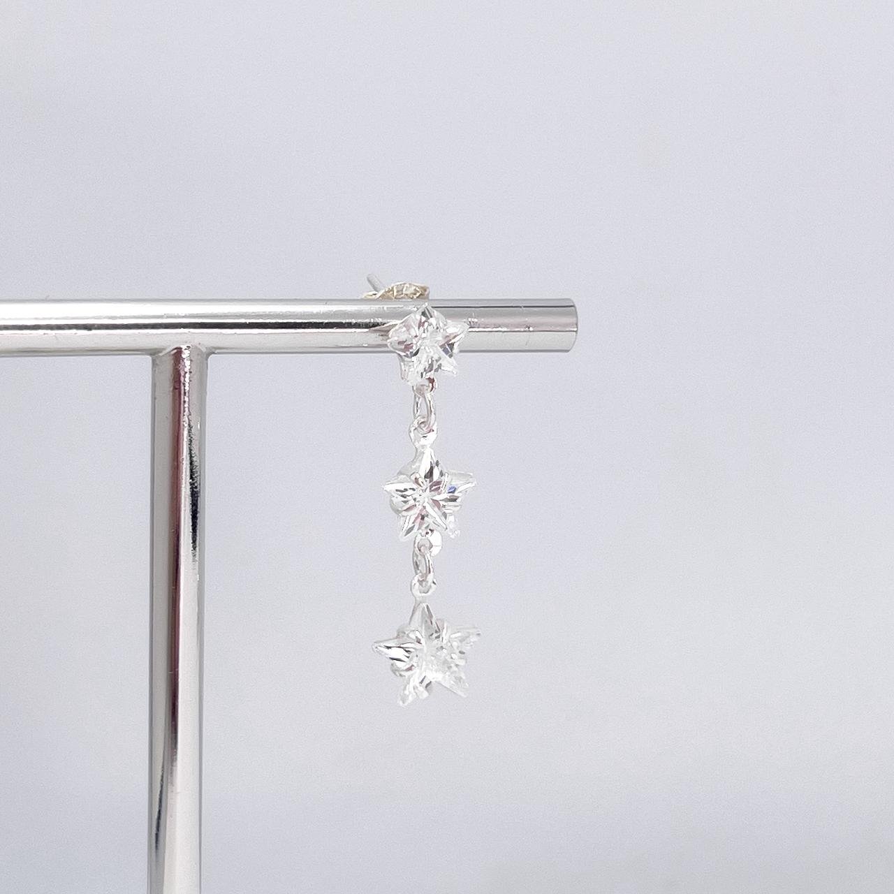 Detalhes Brinco em prata 03 estrelas  penduradas
