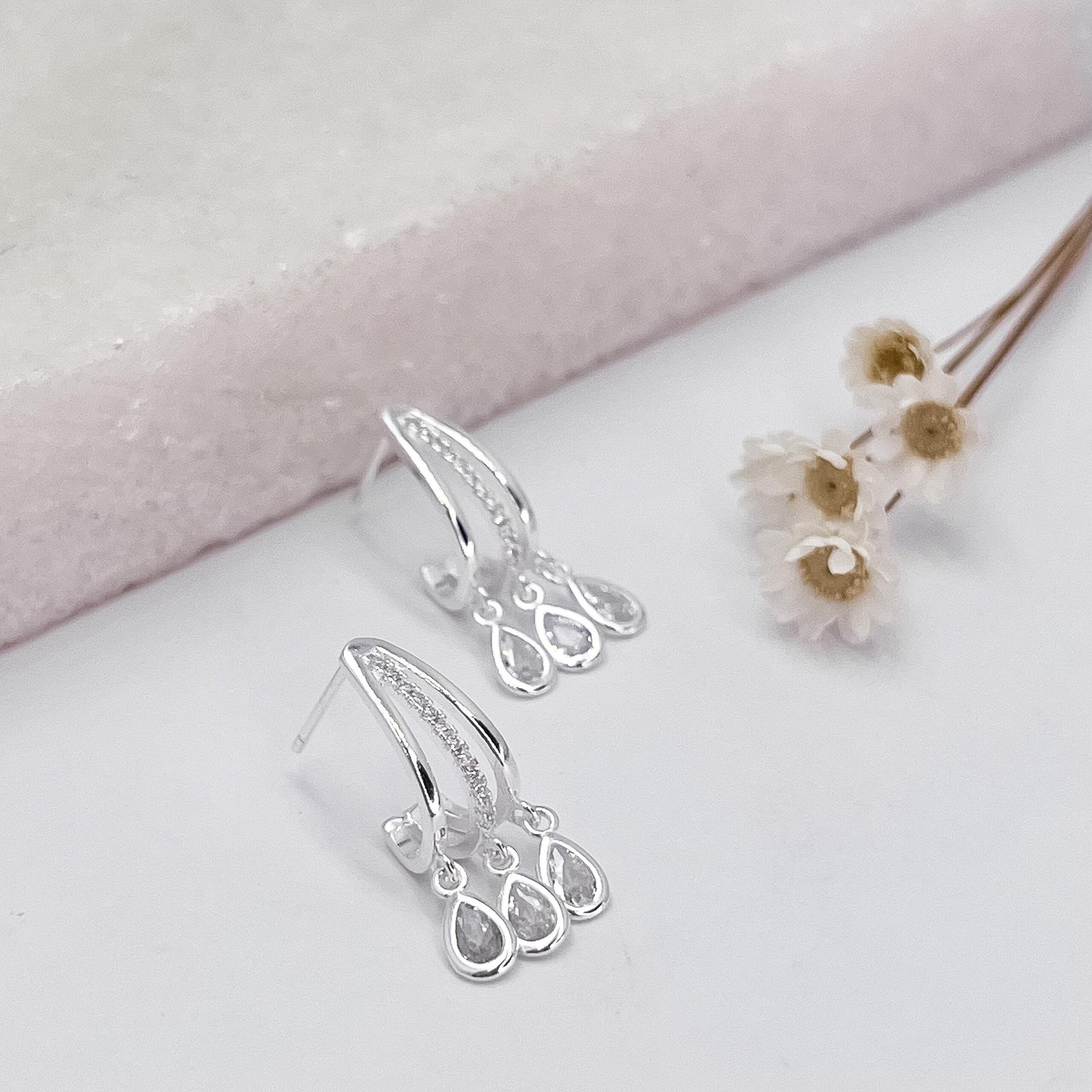 Brinco Prata 03 Fios 03 Gotas Zircônias