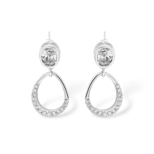 Brinco Prata Zircônia Caixa Alta com Aro Pendurado Cravejado