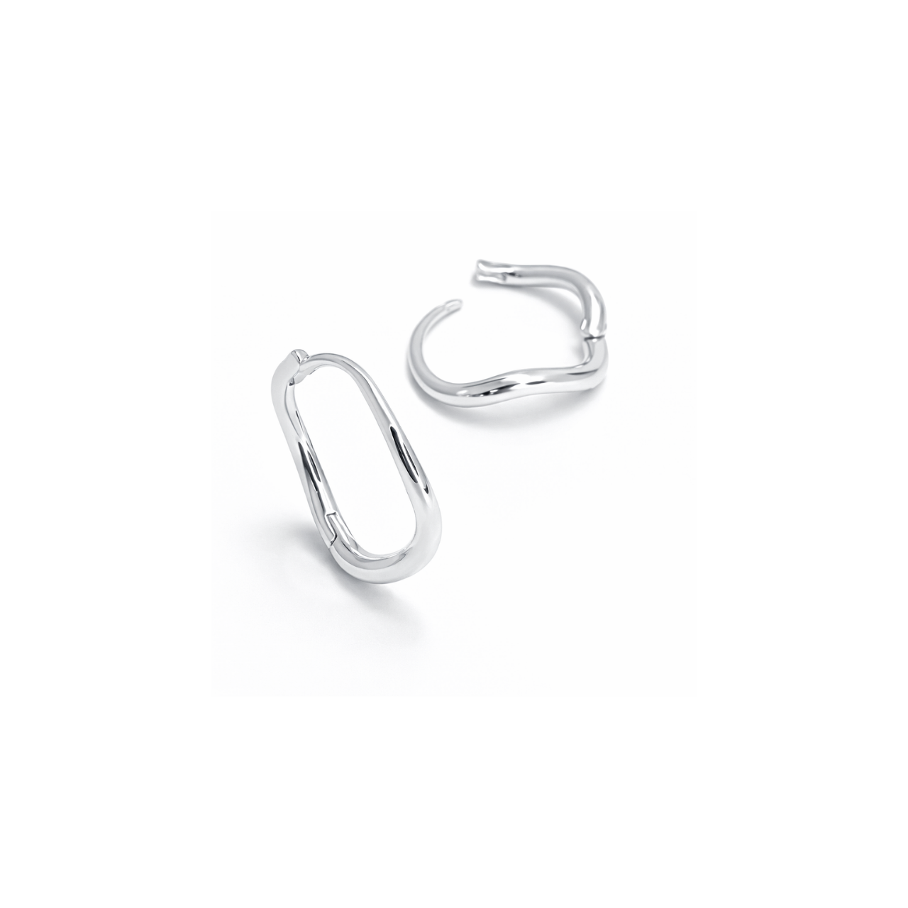 Detalhes Brinco argola em prata ondulada lisa, tamanho pequeno.