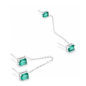 Brinco Prata Duplo com Corrente Caixa Alta Esmeralda
