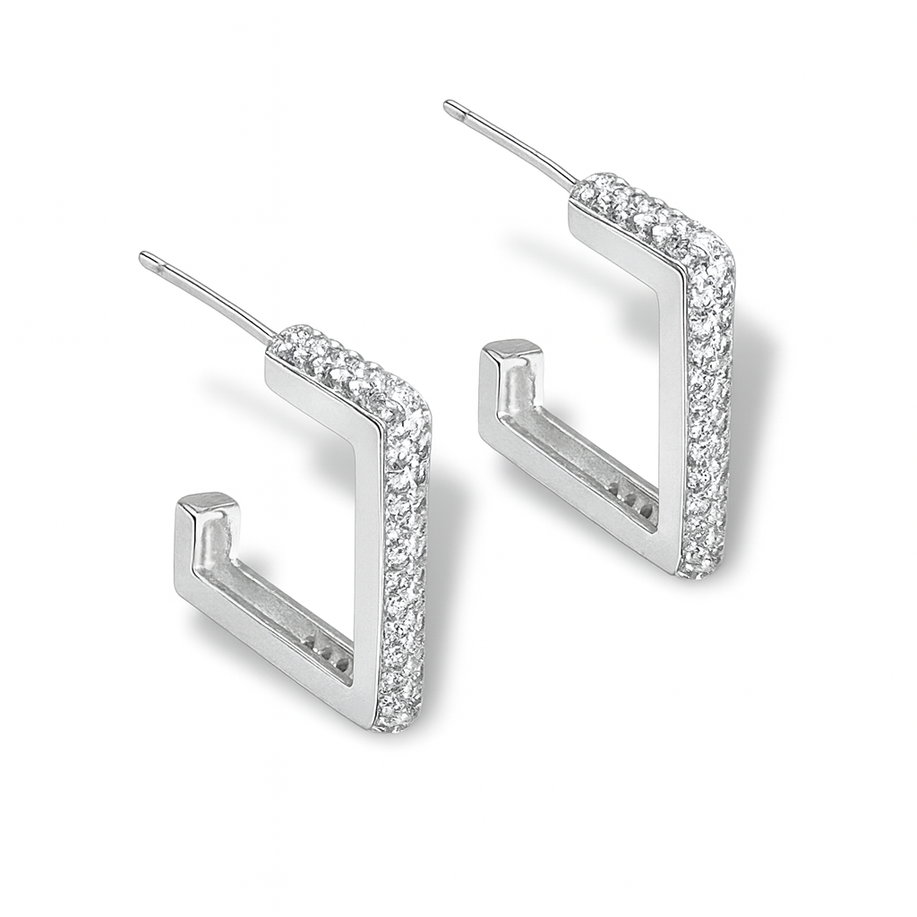 Início BRINCOS Argolas Cravejada Brinco Prata Argola Quadrada Cravejada