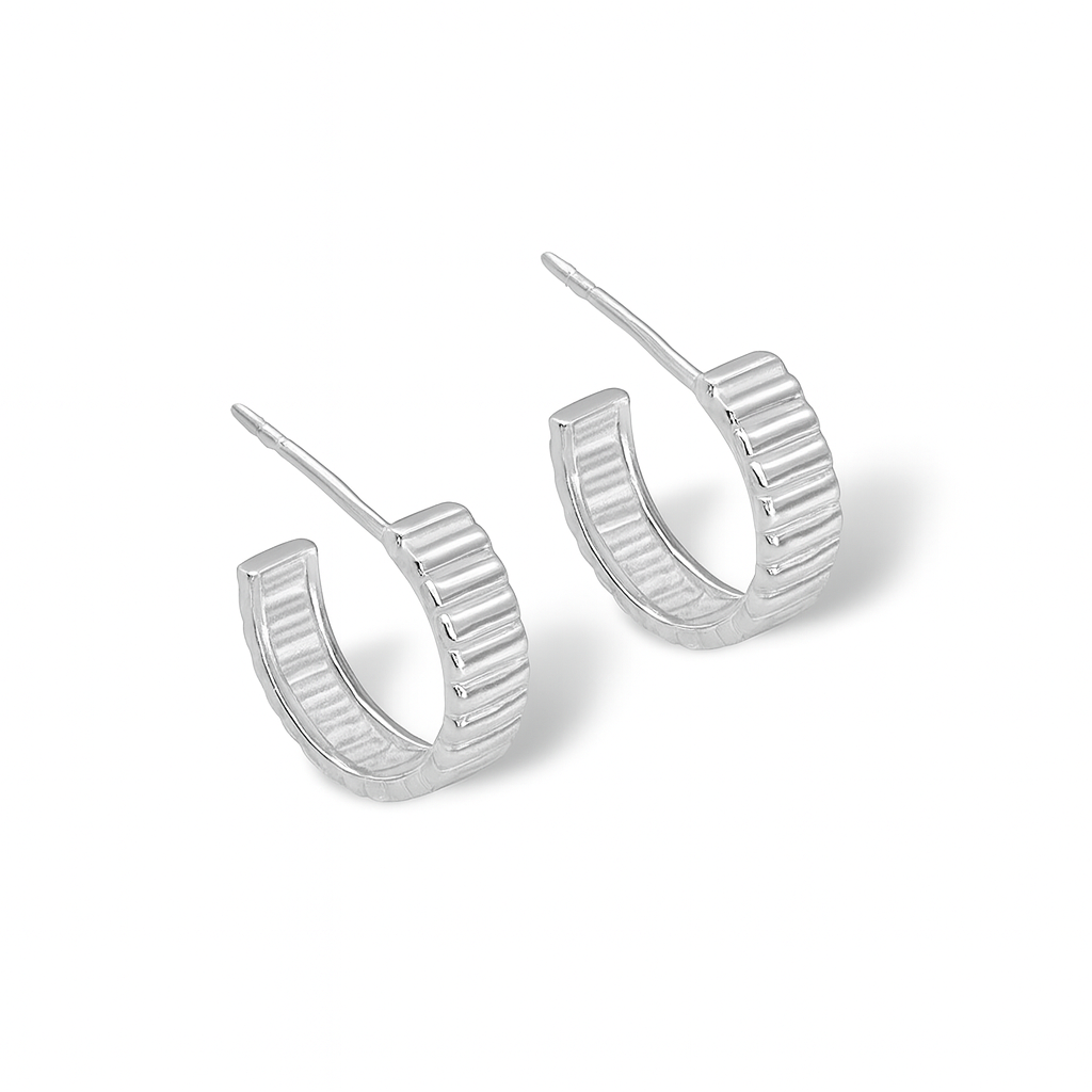 Detalhes Brinco prata argola riscos horizontais