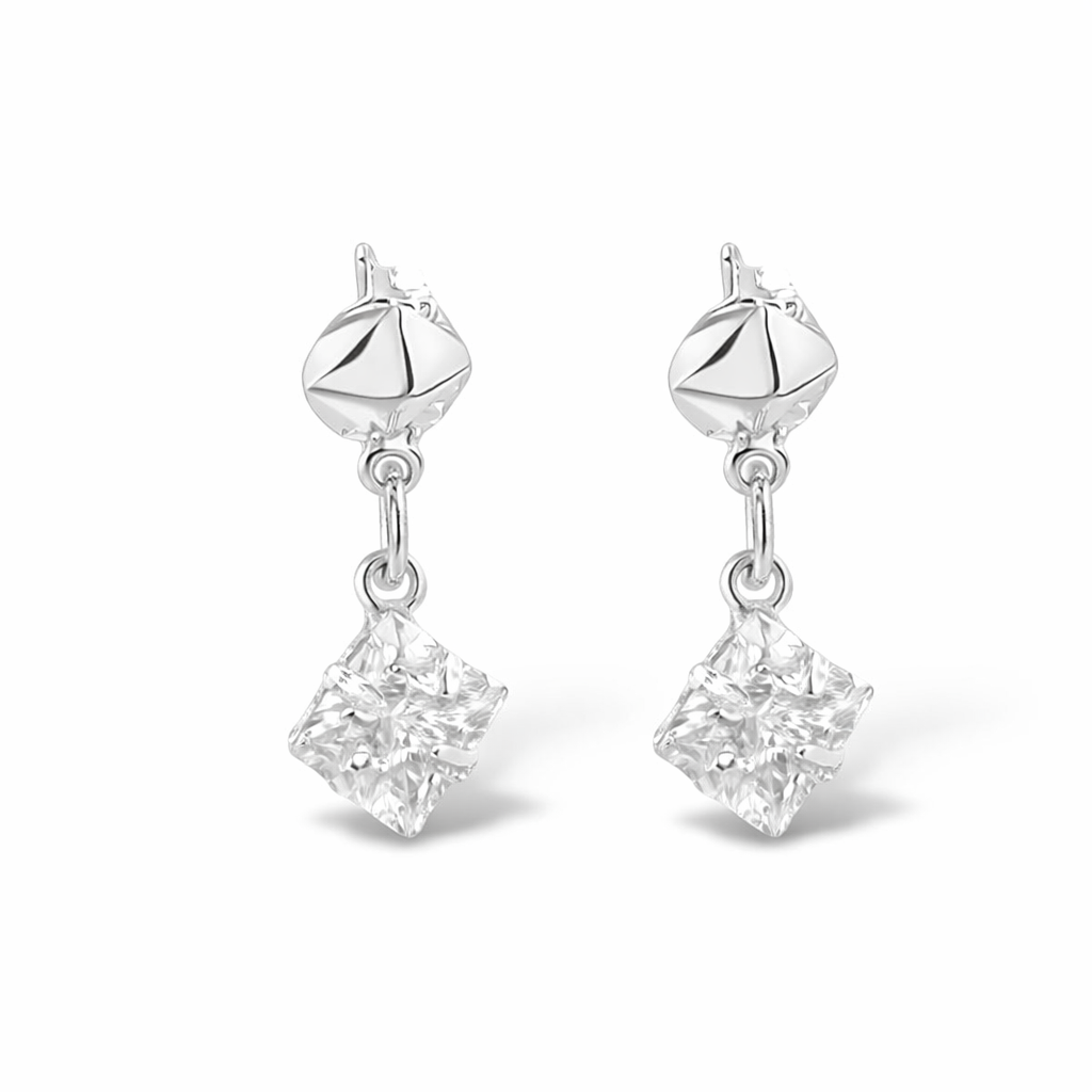 Cartela Brinco Prata Carre Pendurado 05 mm – Contém 04 Pares