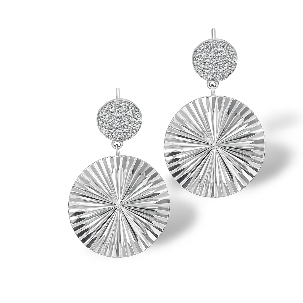 Brinco Prata Chapa Cravejada e Chapa Trabalhada