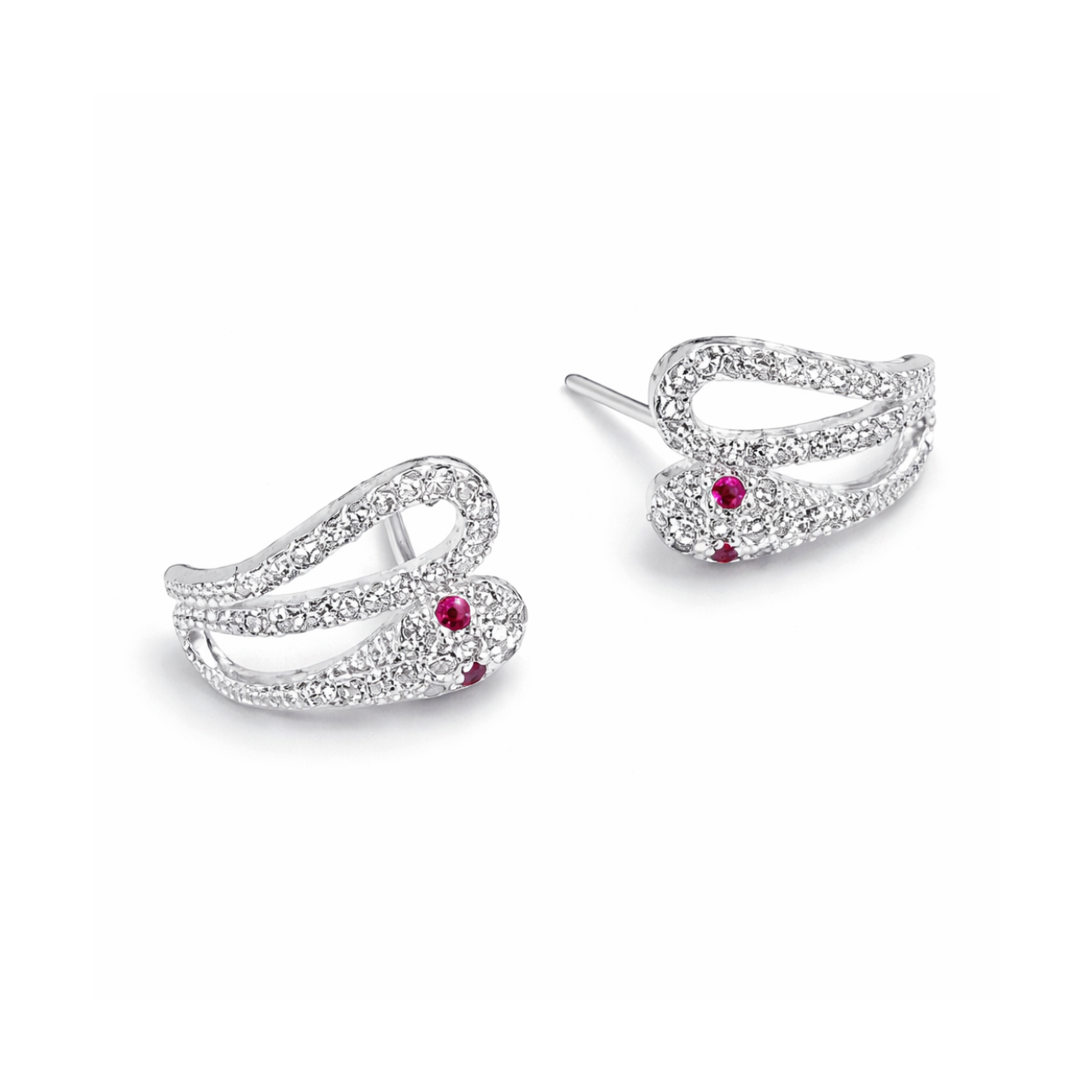 Detalhes Brinco em prata no formato de cobra cravejado com os olhos na zircônia da cor pink