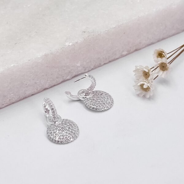 Detalhes Brinco em prata cravejado argola redonda pendurada