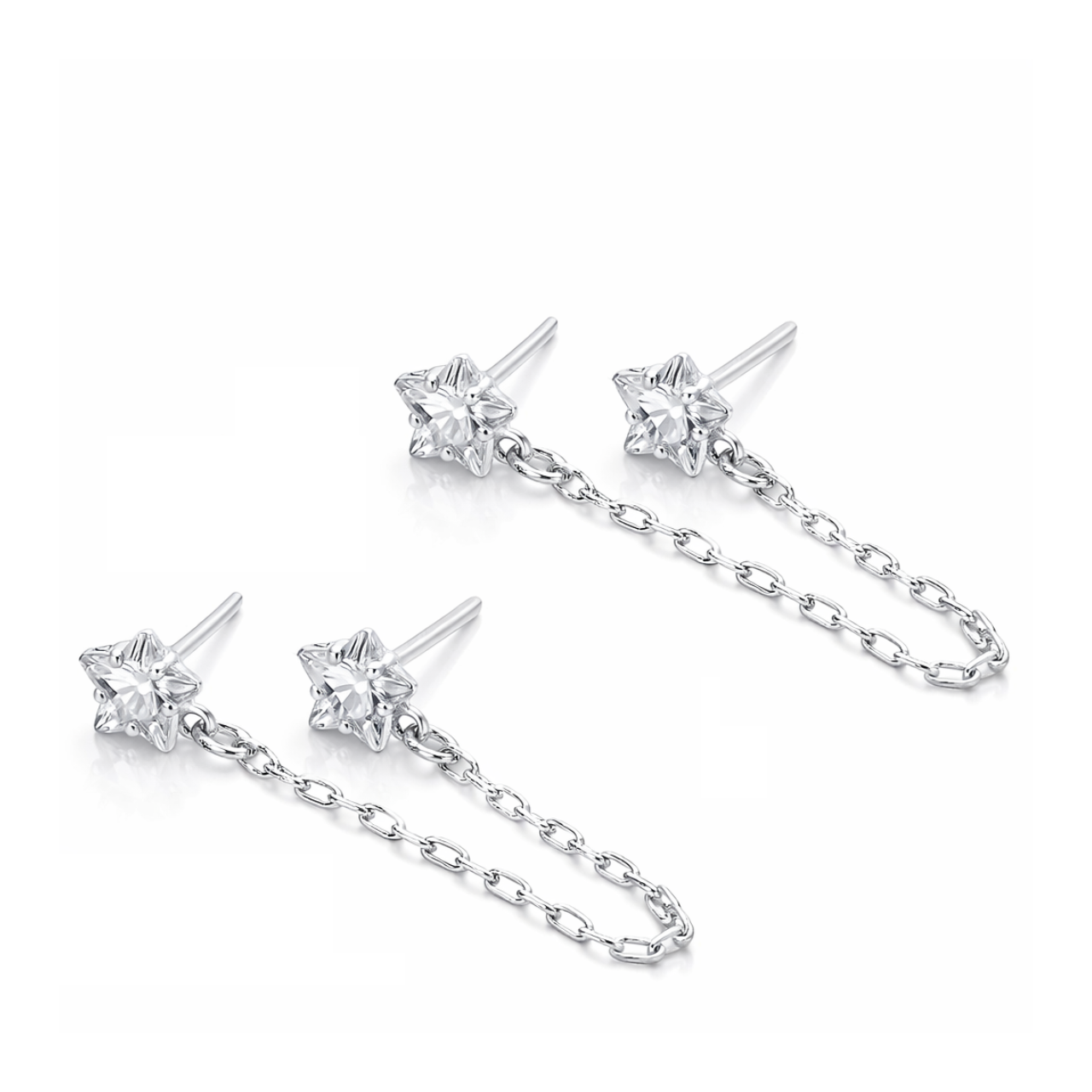Brinco Prata Duplo Estrela 06mm Corrente Cartie
